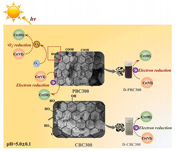 富含纤维素木质素生物炭光催还原Cr(VI)的过程和机制